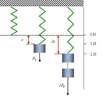 Illustration showing that the force is always linearly related to the extension of a spring.